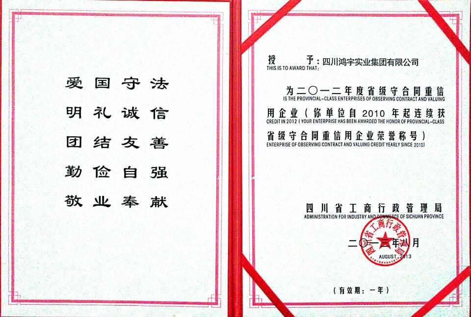 公司历年被授予“四川省首批最具成长型企业100强”称号,被中国市场监测中心评定为“中国质量 服务 信誉AAA级企业”,先后获得国家、省市评选的“诚信示范企业”、“安康杯”竞赛优胜企业、“财税入库先进企业”、“重合同守信用企业”、“绵阳市建筑施工总承包综合排名前十强”、“绵阳市建筑业服务绿卡企业”等多个奖项。